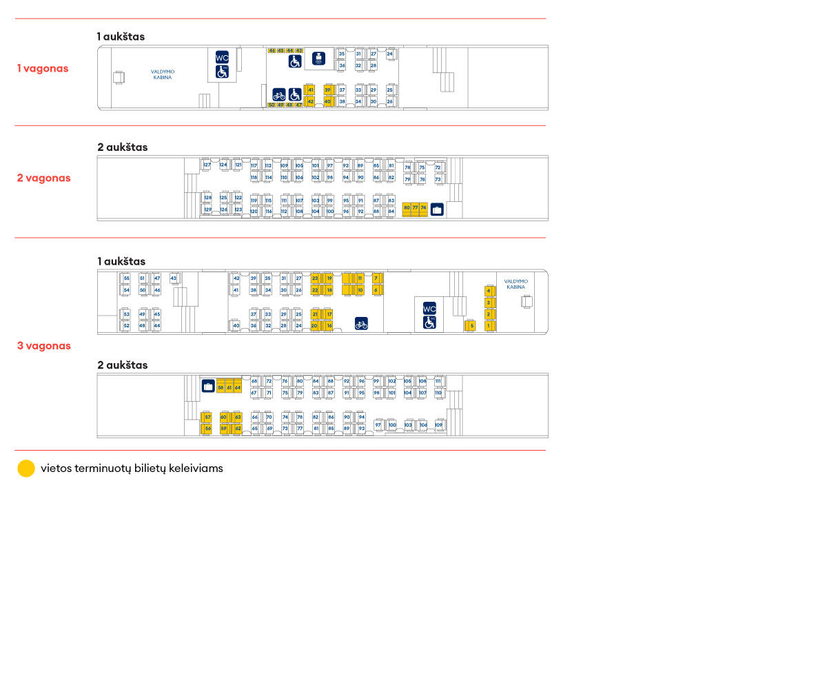🟡Terminuotų bilietų turėtojams vietos taip pat rezervuotos — jos pažymėtos geltona spalva