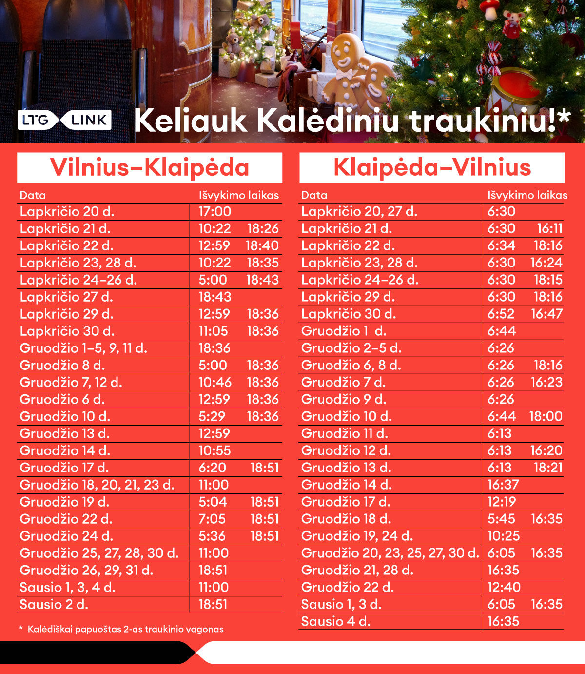 In the event of train or traffic disruptions, LTG Link may replace Christmas trains with trains or alternative means of transport without Christmas decorations. In such cases, the rights of passengers and the carrier’s liability are governed by LTG Link’s General Rules for the Transportation of Passengers.