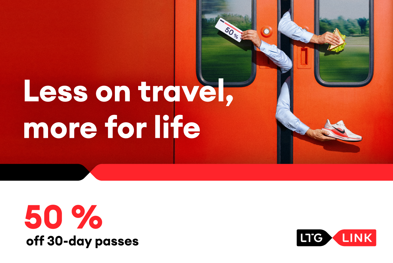 We invite passengers to purchase a 30-day periodic ticket with a 50% discount, allowing you not only to travel conveniently every day but also to save money for other pleasures in life. When travelling becomes this affordable, more is left for yourself – whether it’s lunch in the city, your favourite hobbies while wearing new running shoes, a new accessory, or a ticket to the cinema. You don’t have to choose between mobility and life – with this discount, you can have both.