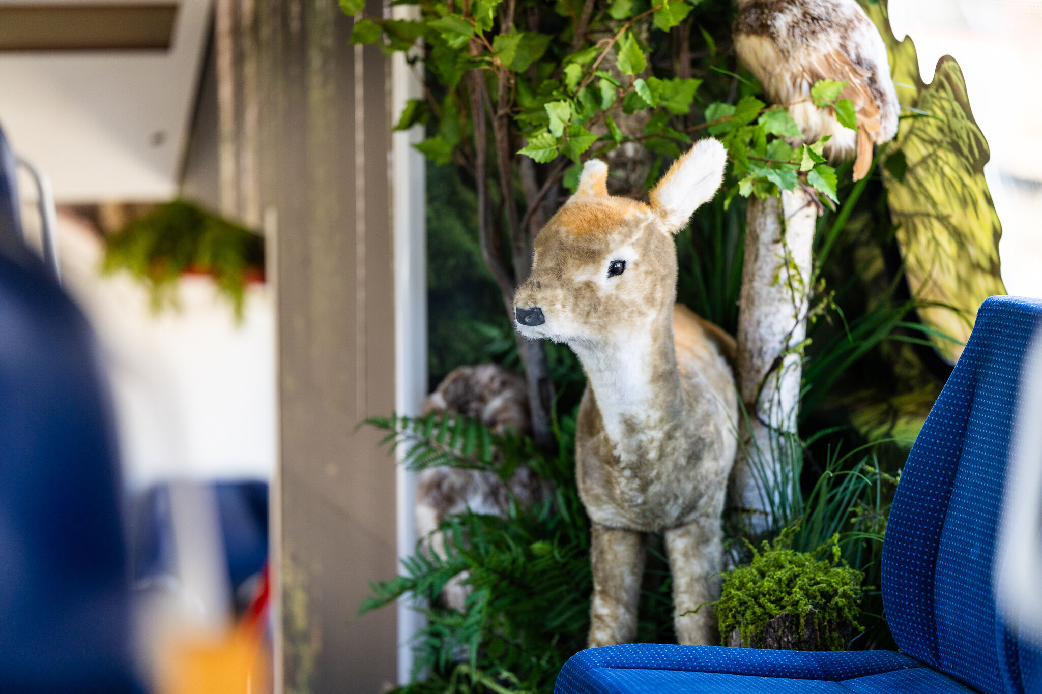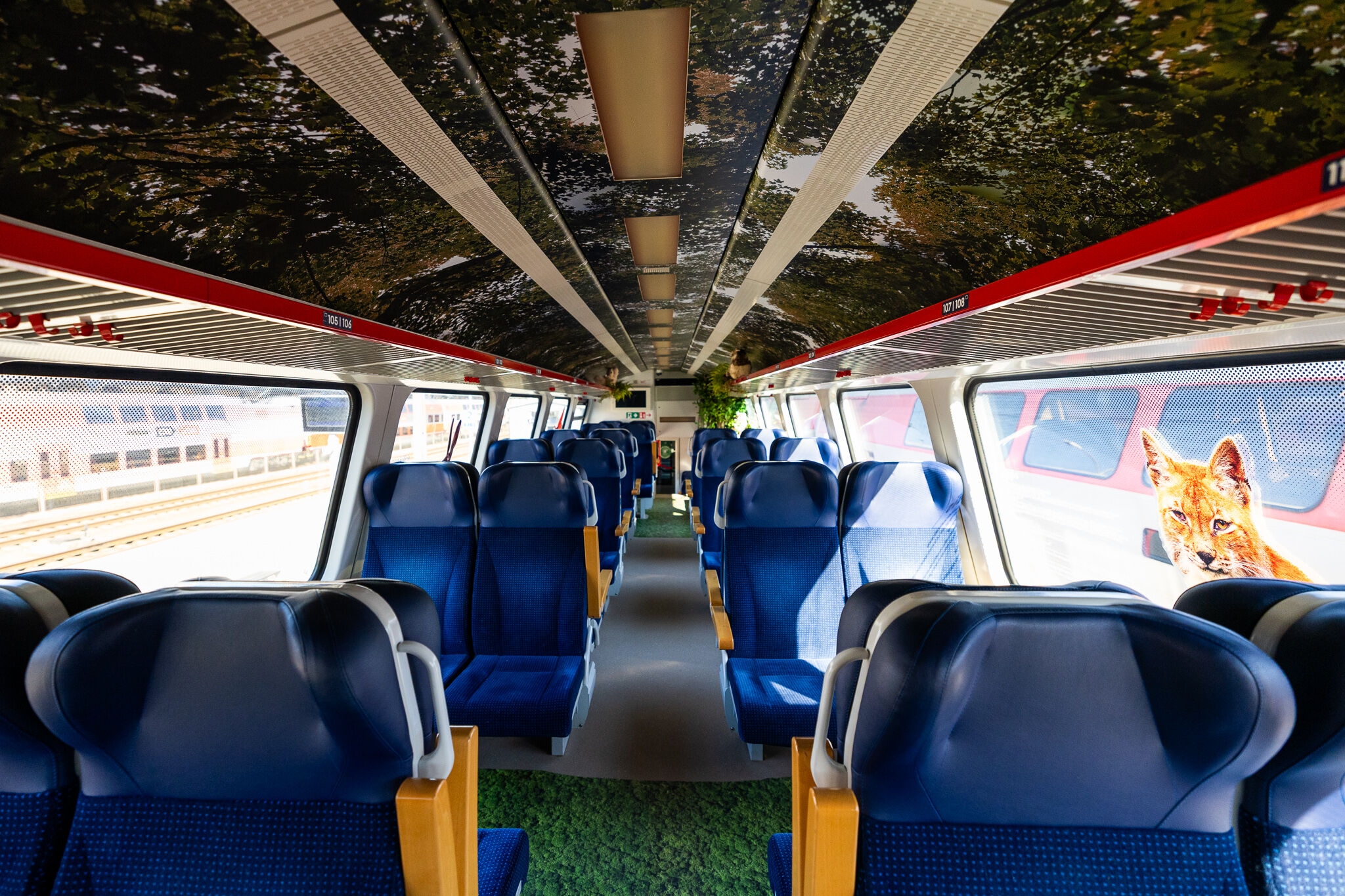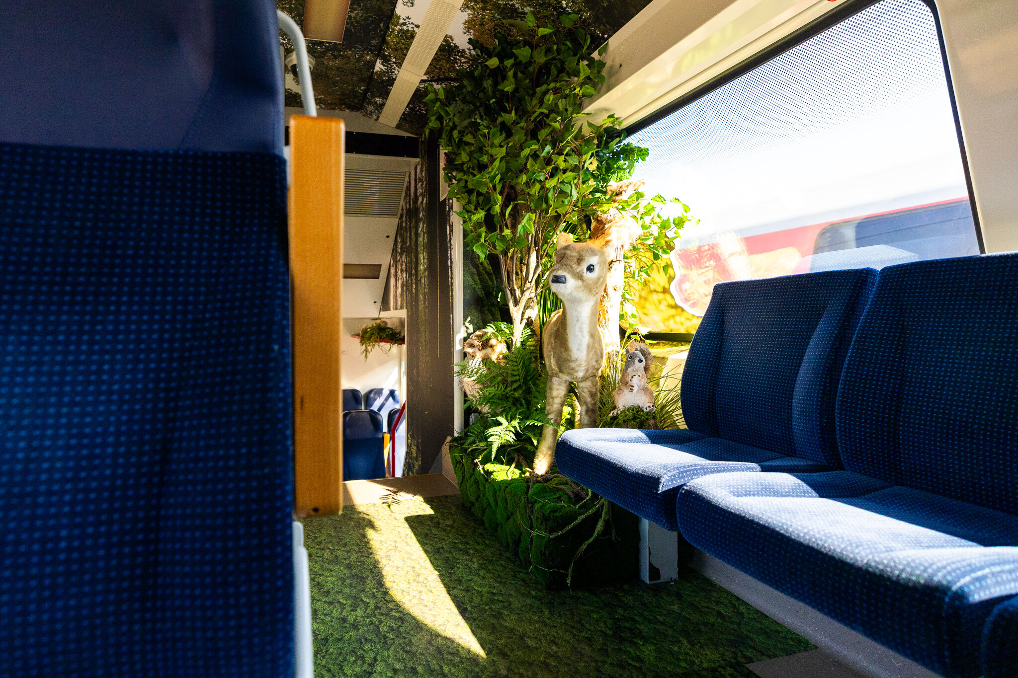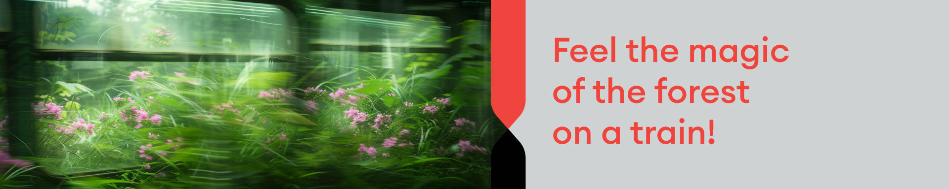 The Forest Train is a unique journey on the Vilnius–Kaunas–Vilnius route. The interior of the train is transformed into a forest oasis, revealing the secrets of nature through engaging visual and narrative installations!