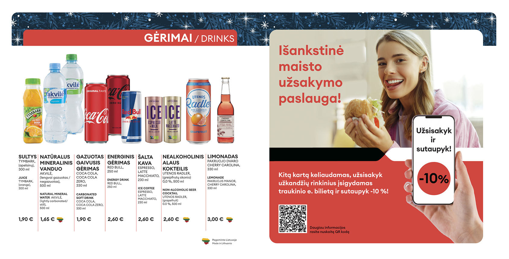 If the duration of your trip is up to 1 hour, we will treat you to one drink of your choice: coffee, tea or a bottle of water.