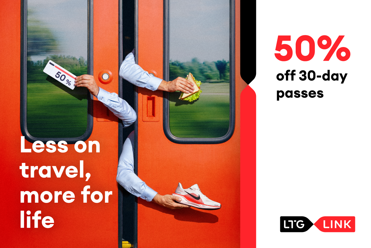 We’re giving passengers the chance to get a 30-day travel pass at half price – making it easier than ever to travel every day and still have money left for life’s little pleasures. When travel is this affordable, there’s more for you – whether it’s lunch in the city, your favorite hobby, running in brand-new sneakers, a stylish accessory, or a night at the movies.