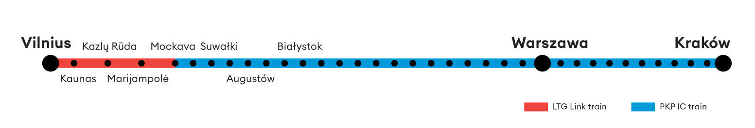 Once these changes take effect, passengers will be able to reach Warsaw twice a day, and the travel time between the capitals will be reduced by 1 hour (to 7h 30min). The Vilnius–Krakow journey will be shorter by 2h 05min (to 10h 12min).