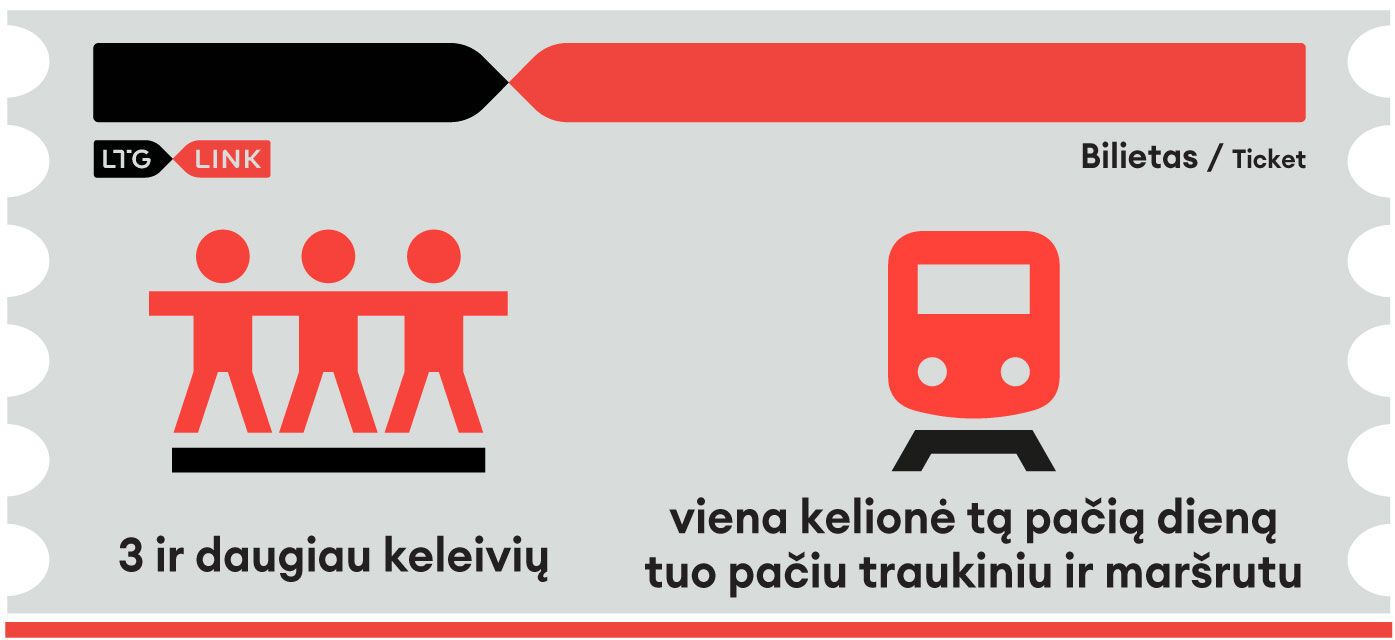 Grupės bilieto nuolaidos taikomos kelionėms Lietuvoje 2-oje ir 3-ioje klasėse.