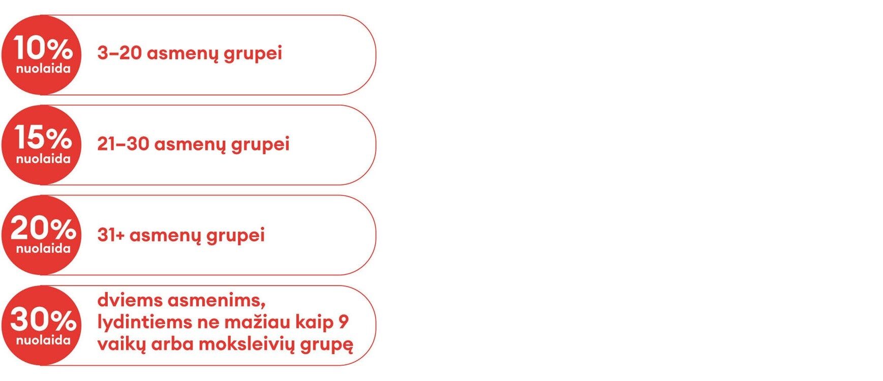 Grupės bilietas – bilietas su nuolaida grupei nuo 3 asmenų.