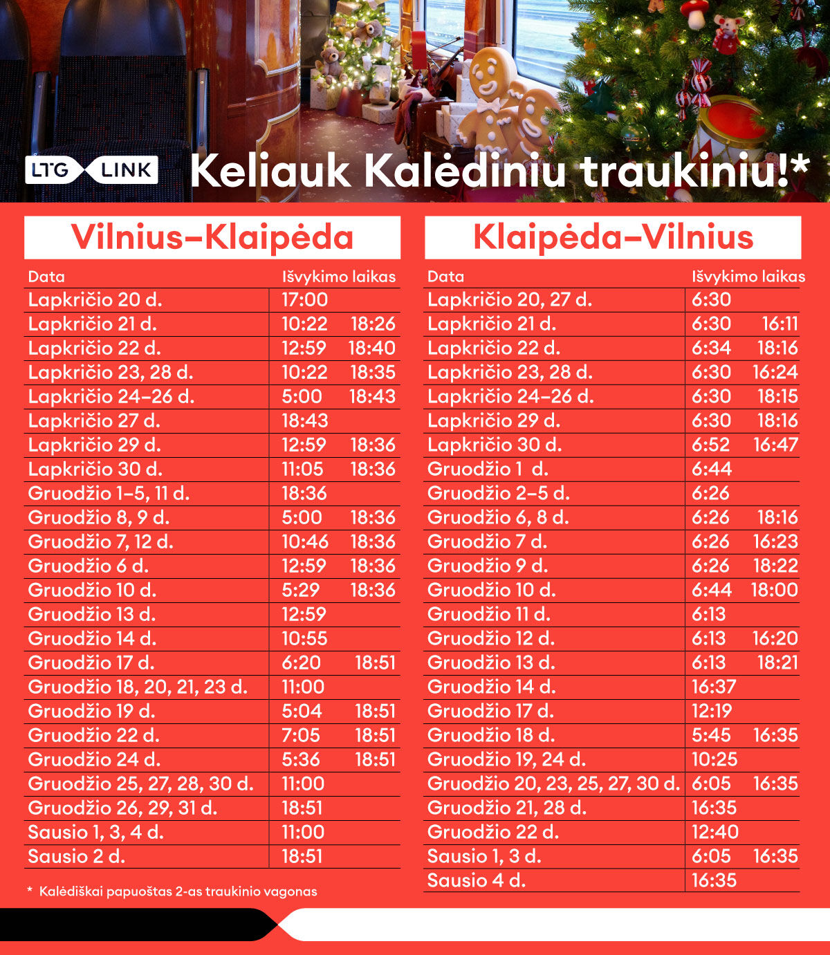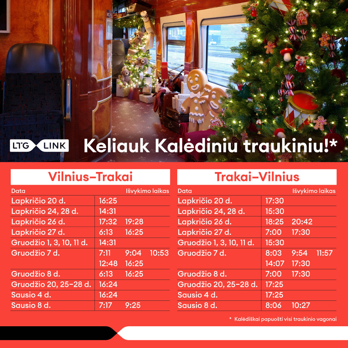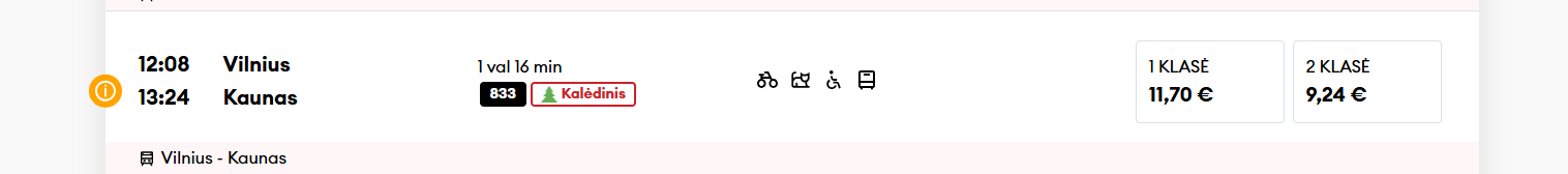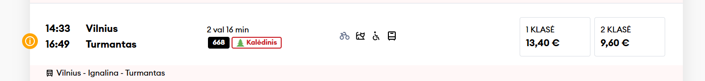 Svarbu: perkant bilietus, atkreipkite dėmesį ar yra prie norimo maršruto žyma pavadinimu "Kalėdinis". Būtent taip sužymėti visi kalėdiniai traukiniai pardavimo sistemoje.