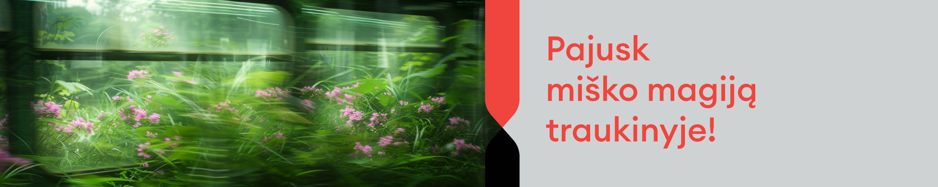 Miško traukinys tai unikali kelionė Vilnius–Kaunas–Vilnius maršrutu. Joje traukinio vidus virtęs miško oaze, atskleidžiančia gamtos paslaptis per įtraukiančias vaizdines ir pasakojamąsias instaliacijas!