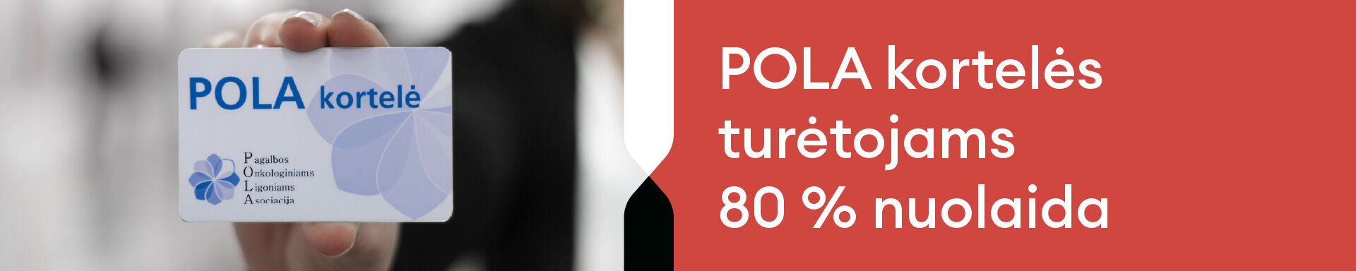 80 % nuolaida taikoma onkologinėmis ligomis sergantiems asmenims, turintiems POLA kortelę.