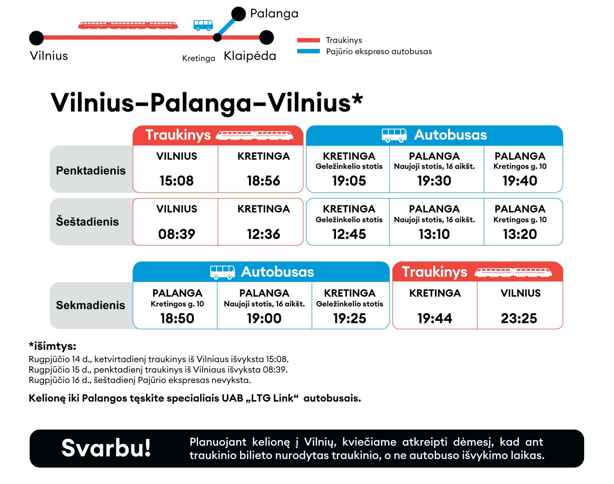 Pajūrio ekspreso tvarkaraštis: