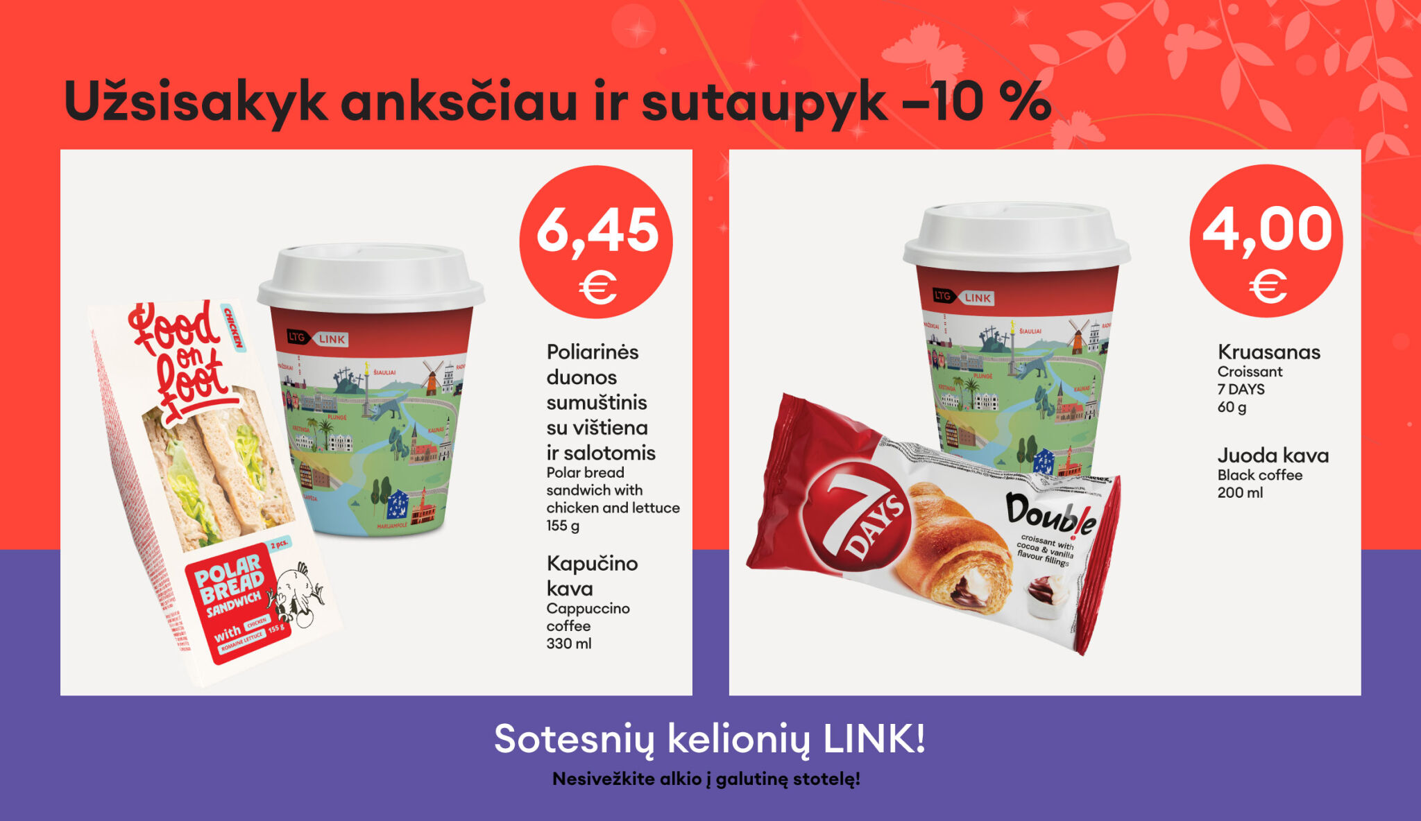 MENIU, kurį rasi eksprese VILNIUS–KAUNAS–VILNIUS