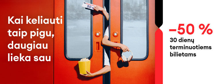 Siūlome keleiviams įsigyti terminuotą 30 dienų bilietą su 50 % nuolaida, leidžiančią ne tik patogiai keliauti kiekvieną dieną, bet ir sutaupyti pinigų kitiems gyvenimo malonumams. Kai keliauti taip pigu, daugiau lieka sau – gal tai pietūs mieste, mėgstamas laisvalaikis bėgant naujais sportiniais bateliais, naujas aksesuaras ar bilietas į kino teatrą. Tau nereikia rinktis tarp judėjimo ir gyvenimo – su šia nuolaida gali turėti abu.