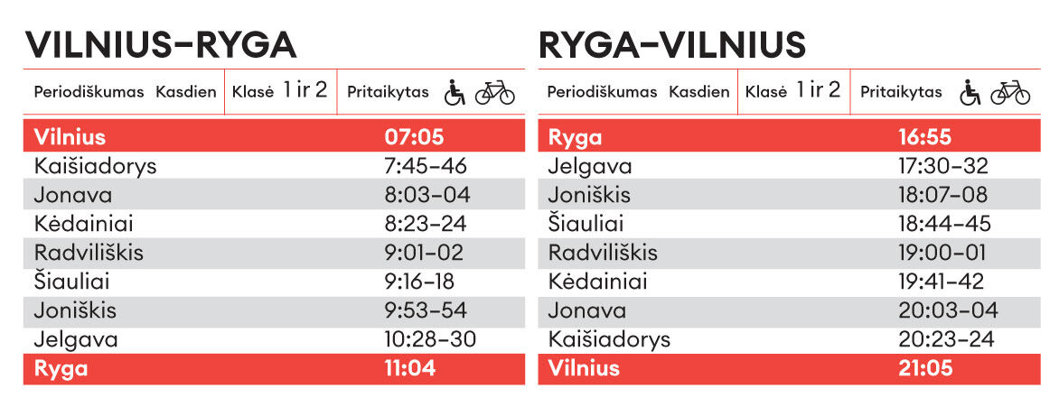 - Atgal iš Rygos išvyks 16:55 ir Vilnių pasieks 21:05 val.