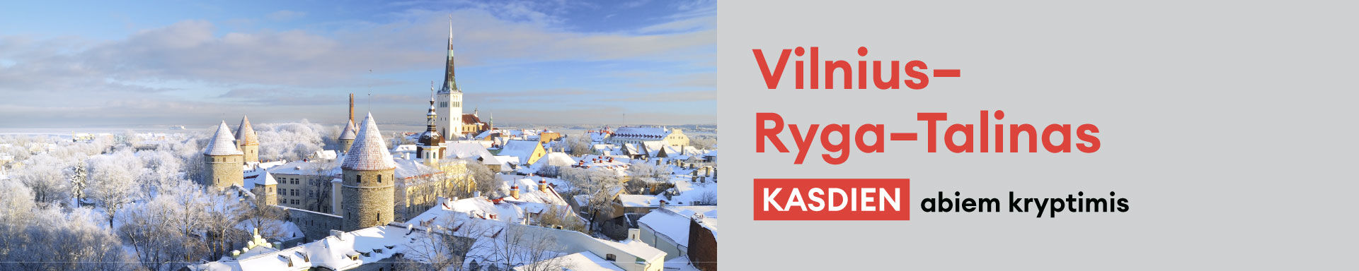 - Tereikia įsigyti vieną tęstinės kelionės bilietą Vilnius–Talinas.