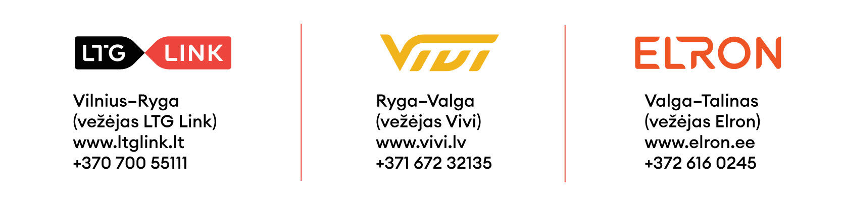 Trijų Baltijos šalių vežėjai – „LTG Link“, „Vivi“ ir „Elron“ – kviečia iš Vilniaus į Taliną keliauti įsigijus VIENĄ BILIETĄ ir su VIENU PERSĖDIMU Valgos stotyje, Estijoje.
