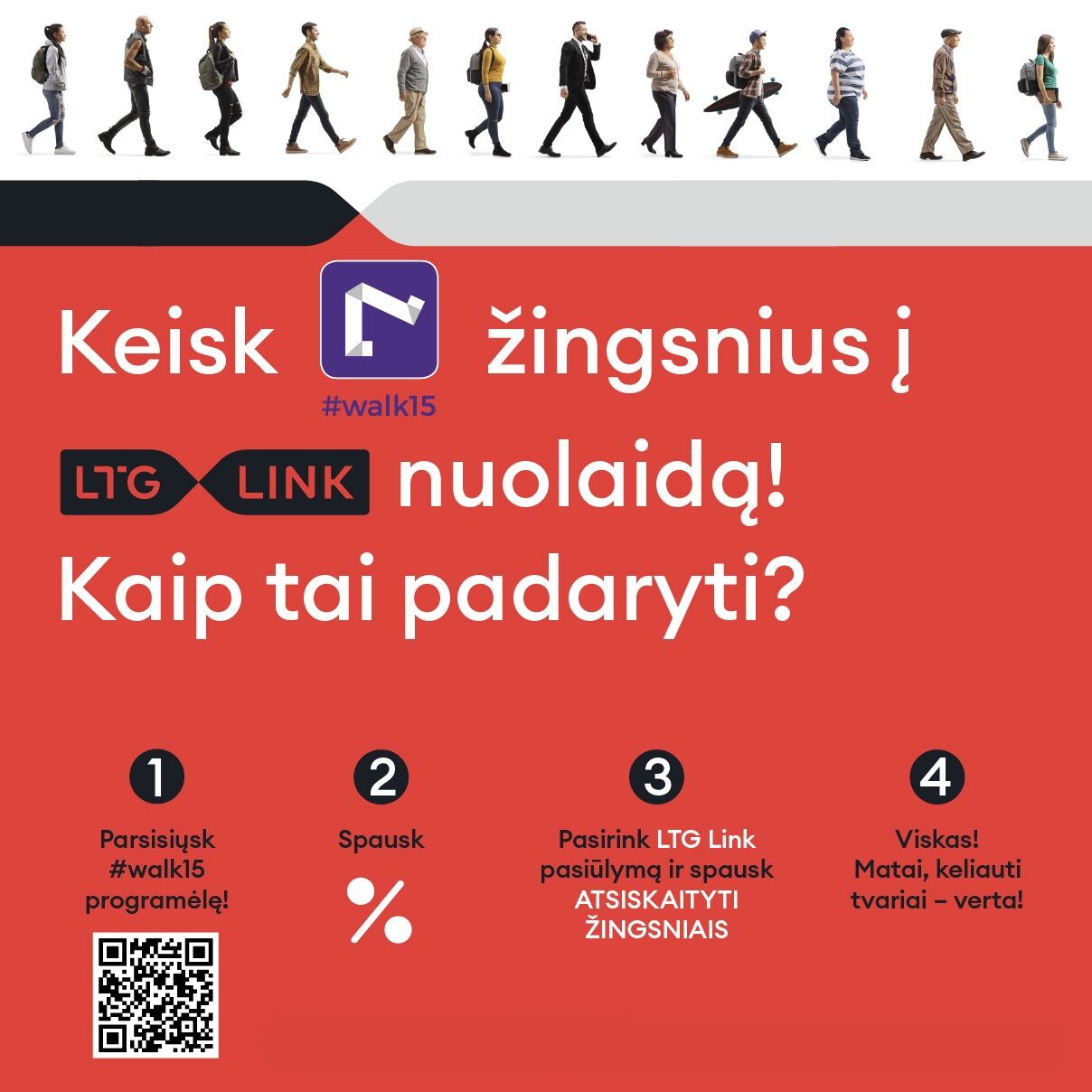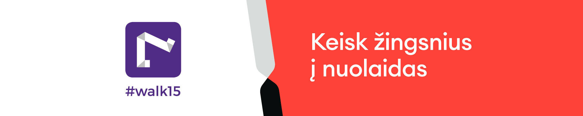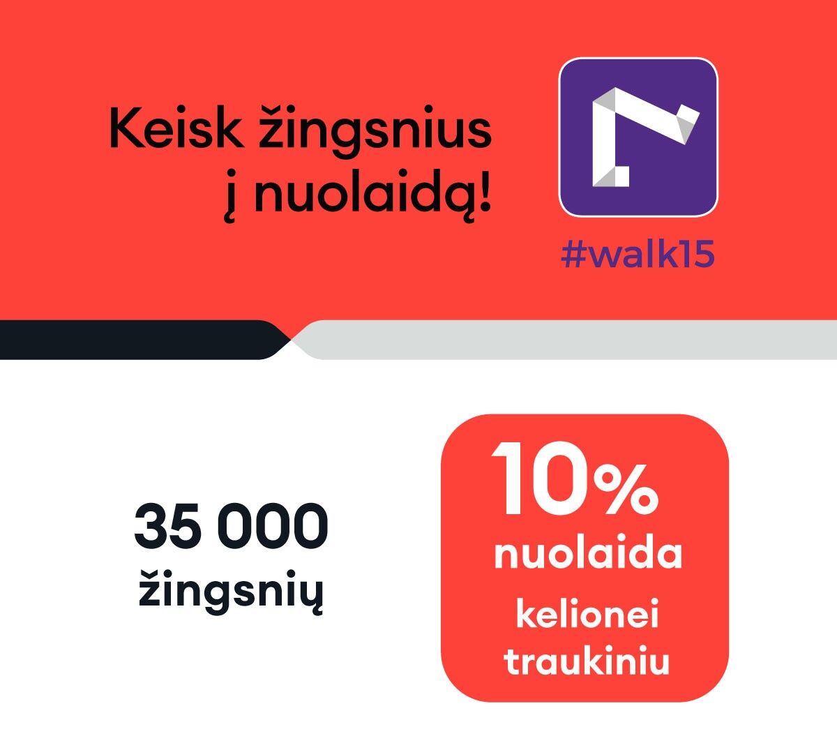 Nuolaidos kodas #walk15 programėlėje rodomas 24 val.